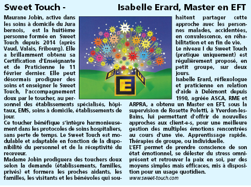 Article dans l'ARC HEBDO du 22 FEVRIER 2018 (sujet maître EFT)