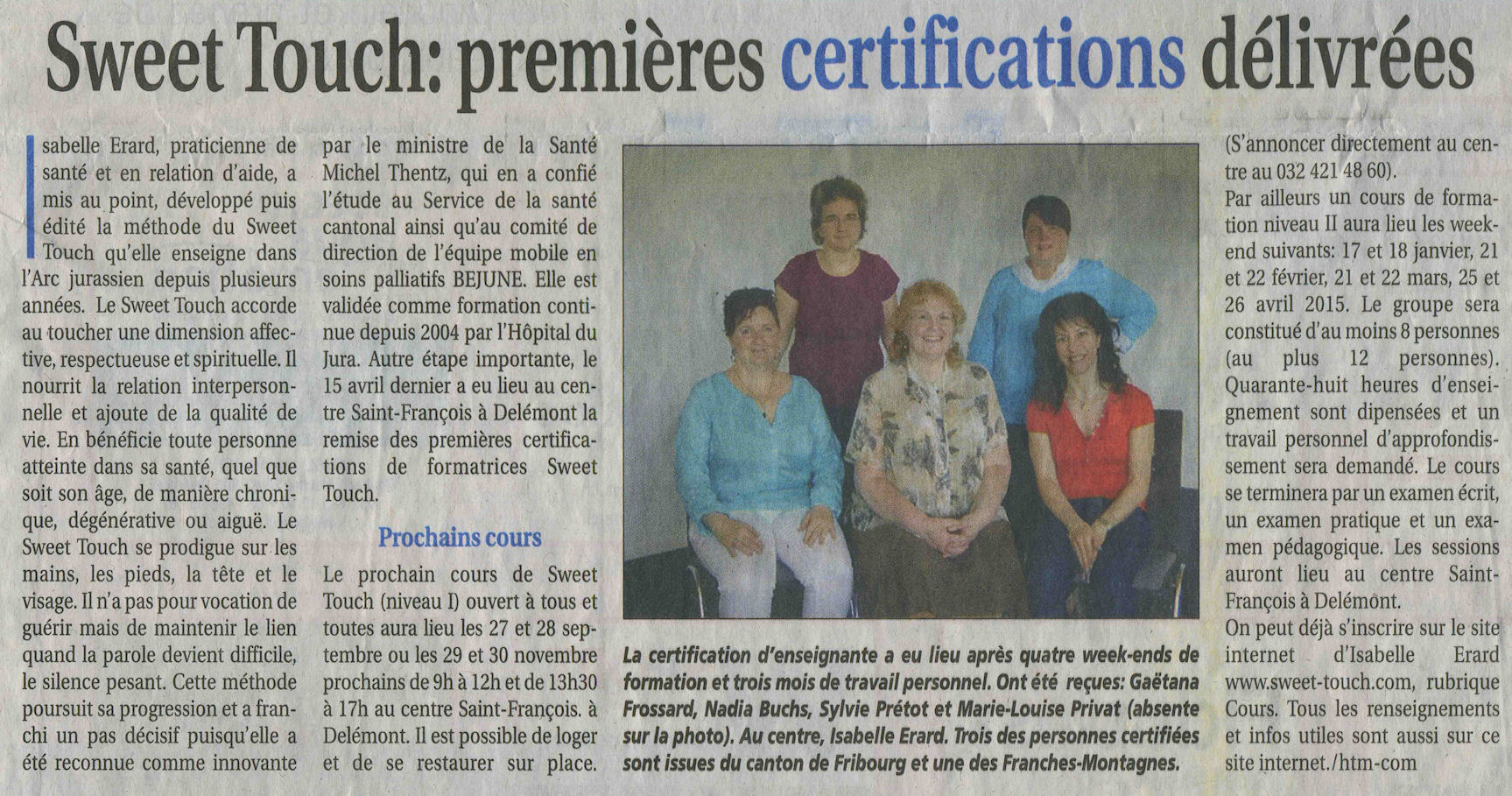 Article ARC HEBDO DU 23 AVRIL 2014 (premières certifications Sweet Touch)